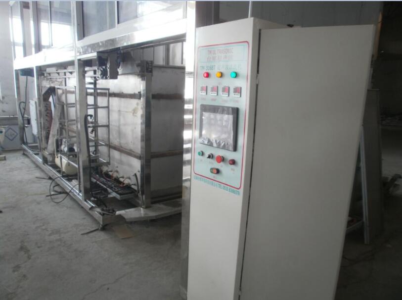 变速箱零件超声波清洗机系统主要由超声波发生器、超声波换能器、超声波震板装置、超声波清洗槽或超高压喷淋槽、市水鼓泡漂洗槽、热风烘干及压缩空气吹水槽,储液槽、循环过滤系统、油水分离系统,自动温控加热系统、清洗蓝旋转系统,超高压喷淋装置,进出料输送小车、电脑龙门单臂机械手、底盘与机架、操作面板和控制系统等组成。以下是我们为哈尔滨某某机械集团公司设计的变速箱零件超声波清洗项目安装调试现场。